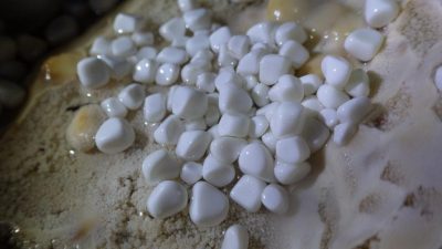 水が吸い込まれてたくさんの穴が空きます。
